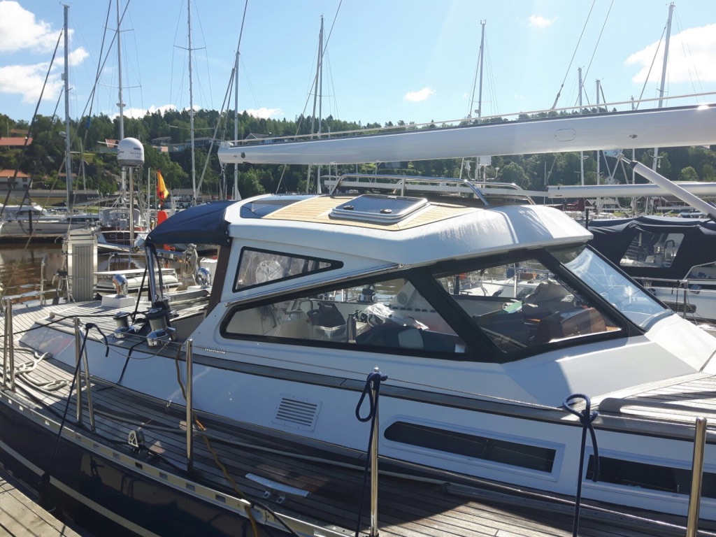Below picture: This is Saphir in 2017 when a hard top has been put on with solarpanel and a radar/windgenerator pole in stainless steel.